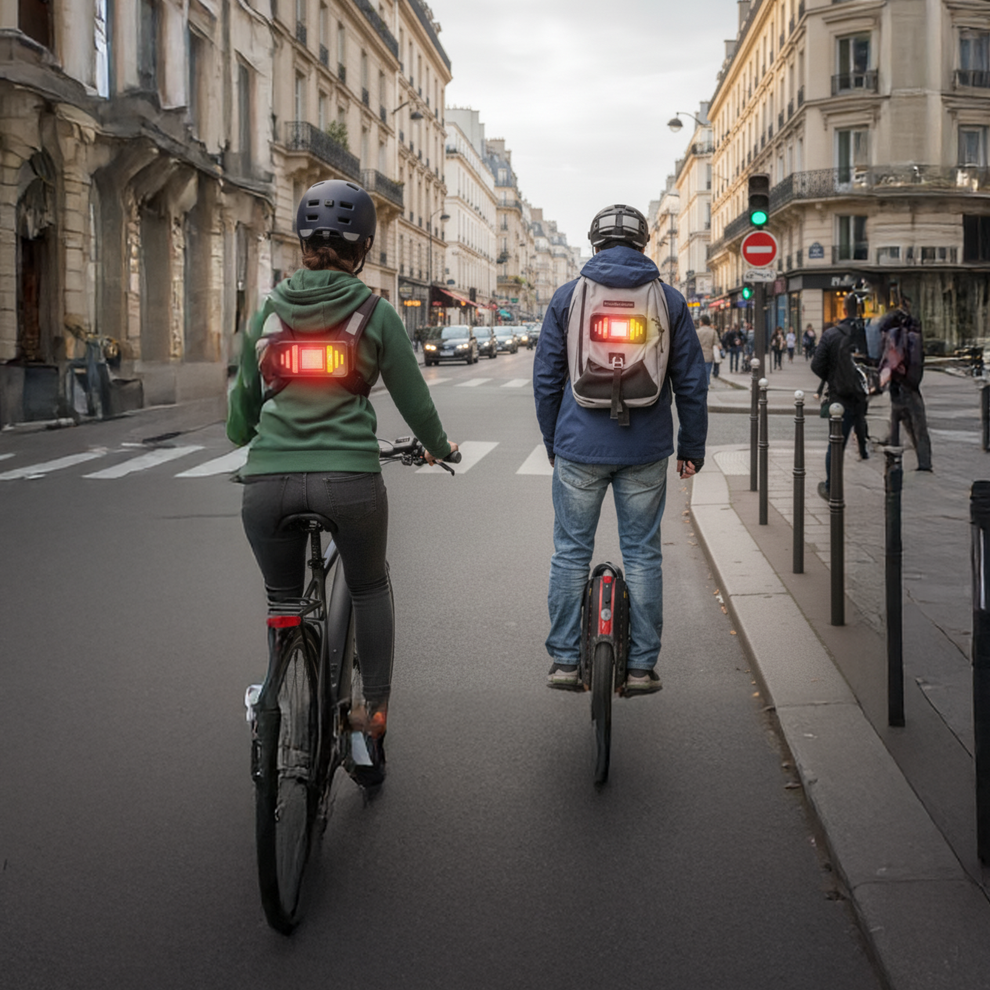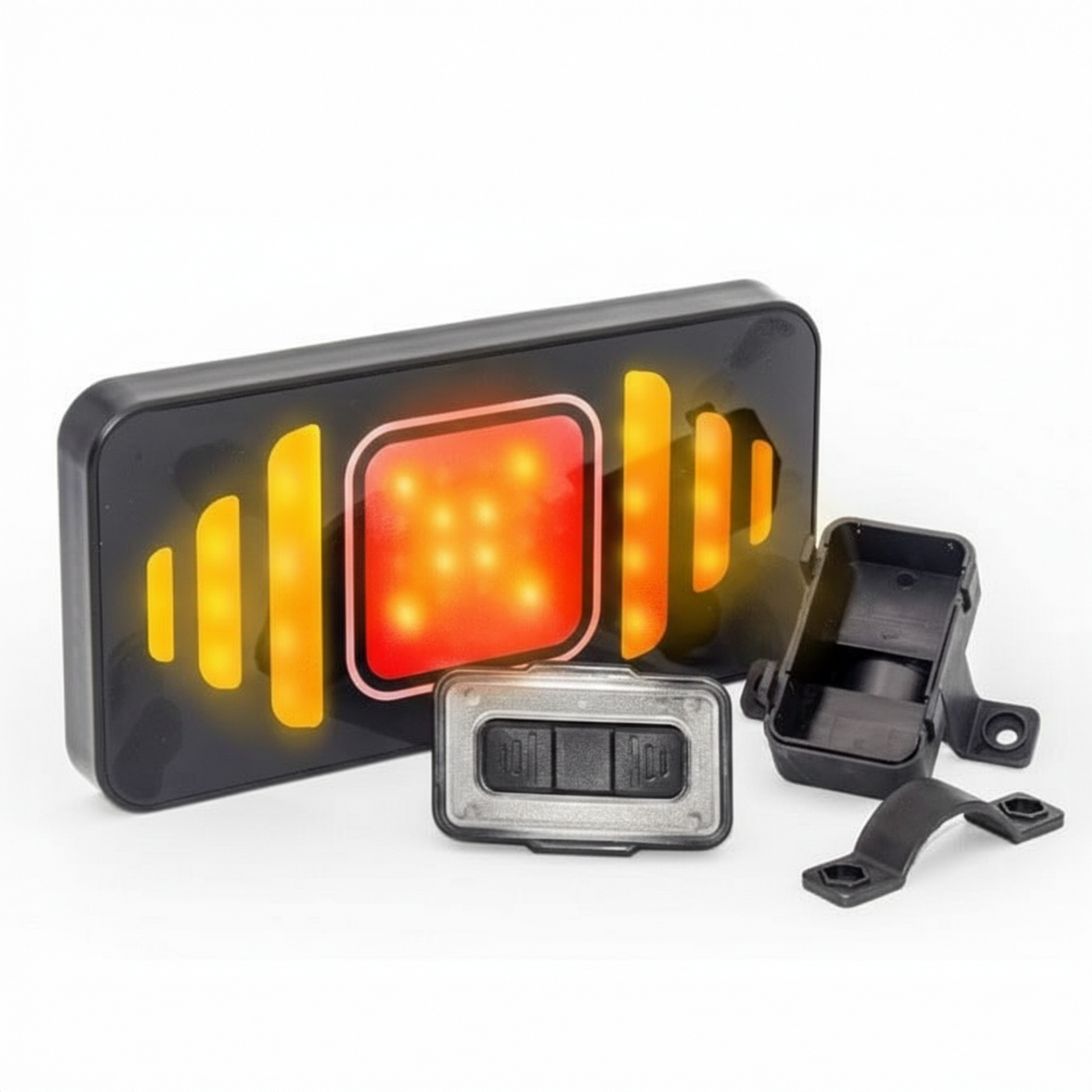 Feux de Signalisation Sans Fil pour Vélo & Trottinette | Clignotants + Frein Automatique | Ultra Visible 400 m | Étanche | USB-C | Compatible Moto via Câbles Fournis