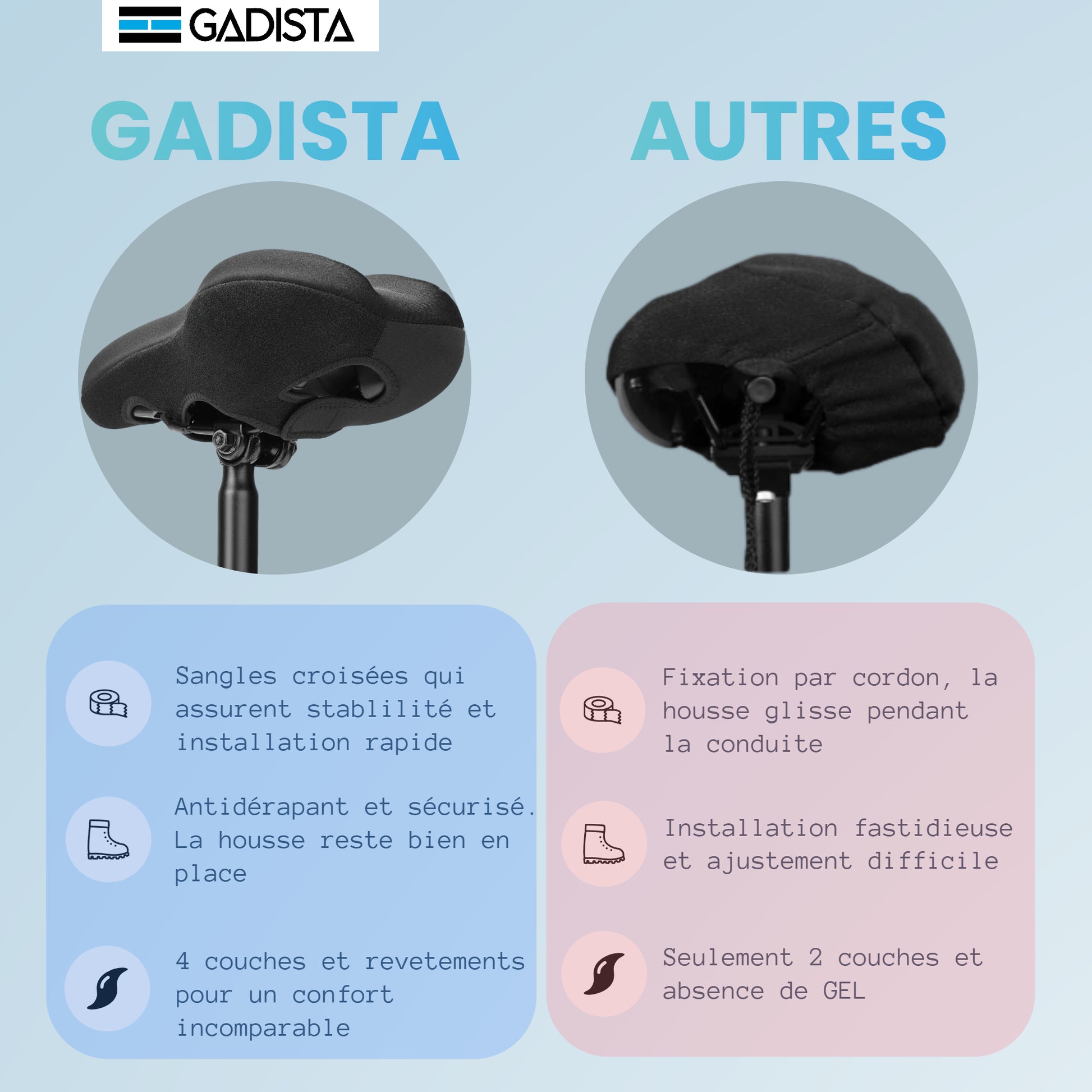 Housse de Selle de Vélo en Gel, Couvre Selle Velo Ultra Confortable pour VTT, Vélo de Route, E-Bike, et Vélo Spinning - Hommes et Femmes